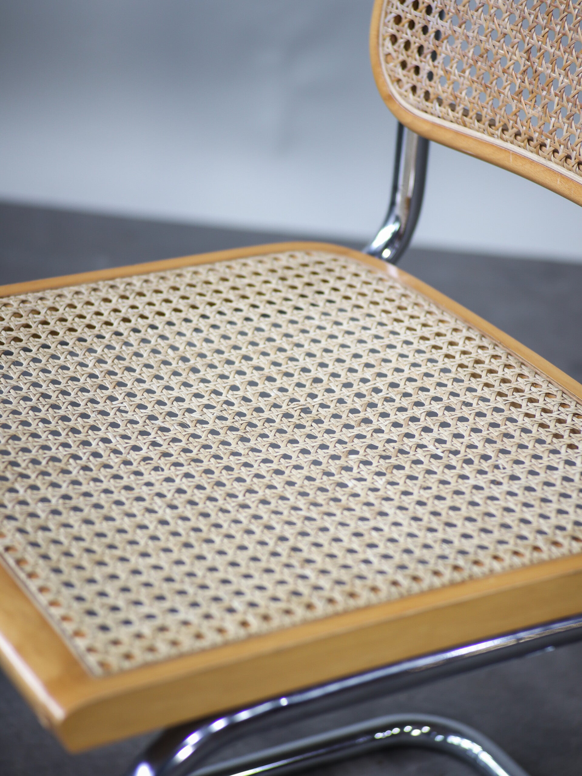 Vintage Cesca buisframe stoel met hout en webbing ontworpen door Marcel Breuer, gemaakt in Italië. Een comfortabele stoel met een iconisch ontwerp, dat geweldig staat in ieder interieur!