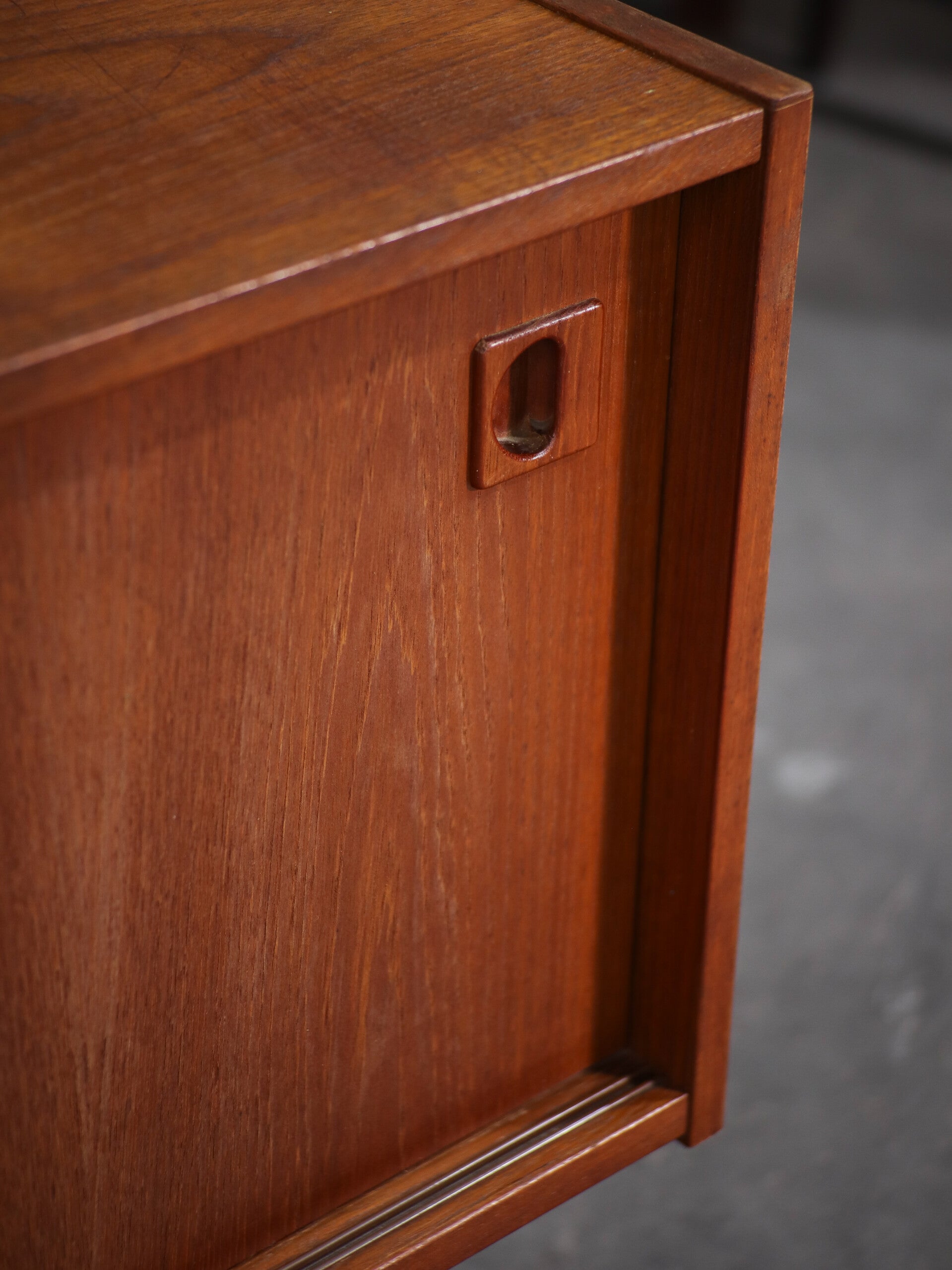 Kast met schuifdeurtjes laag teakhout 1960s