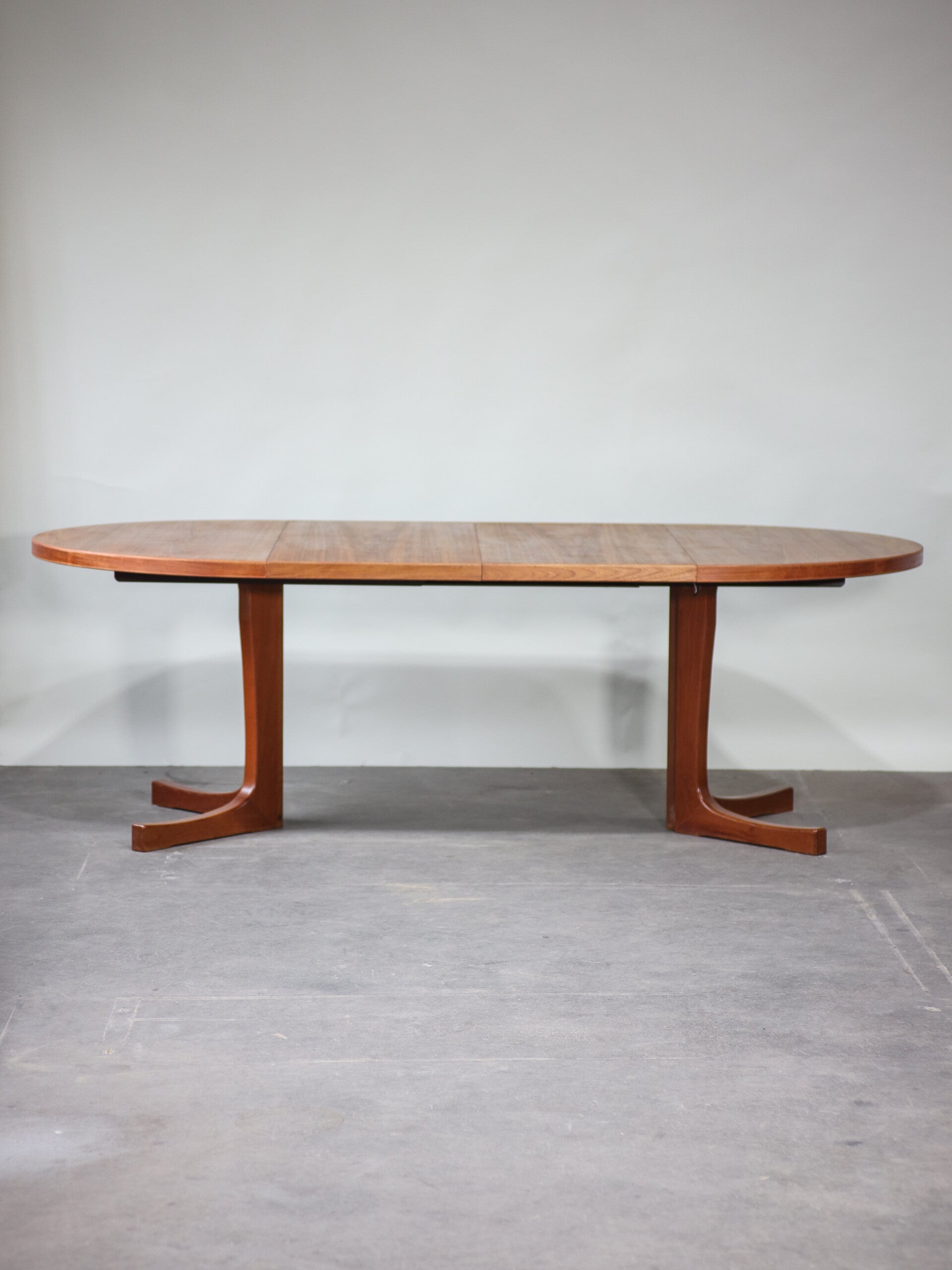 Eettafel uitschuifbaar rond ovaal teak Deens jaren '60