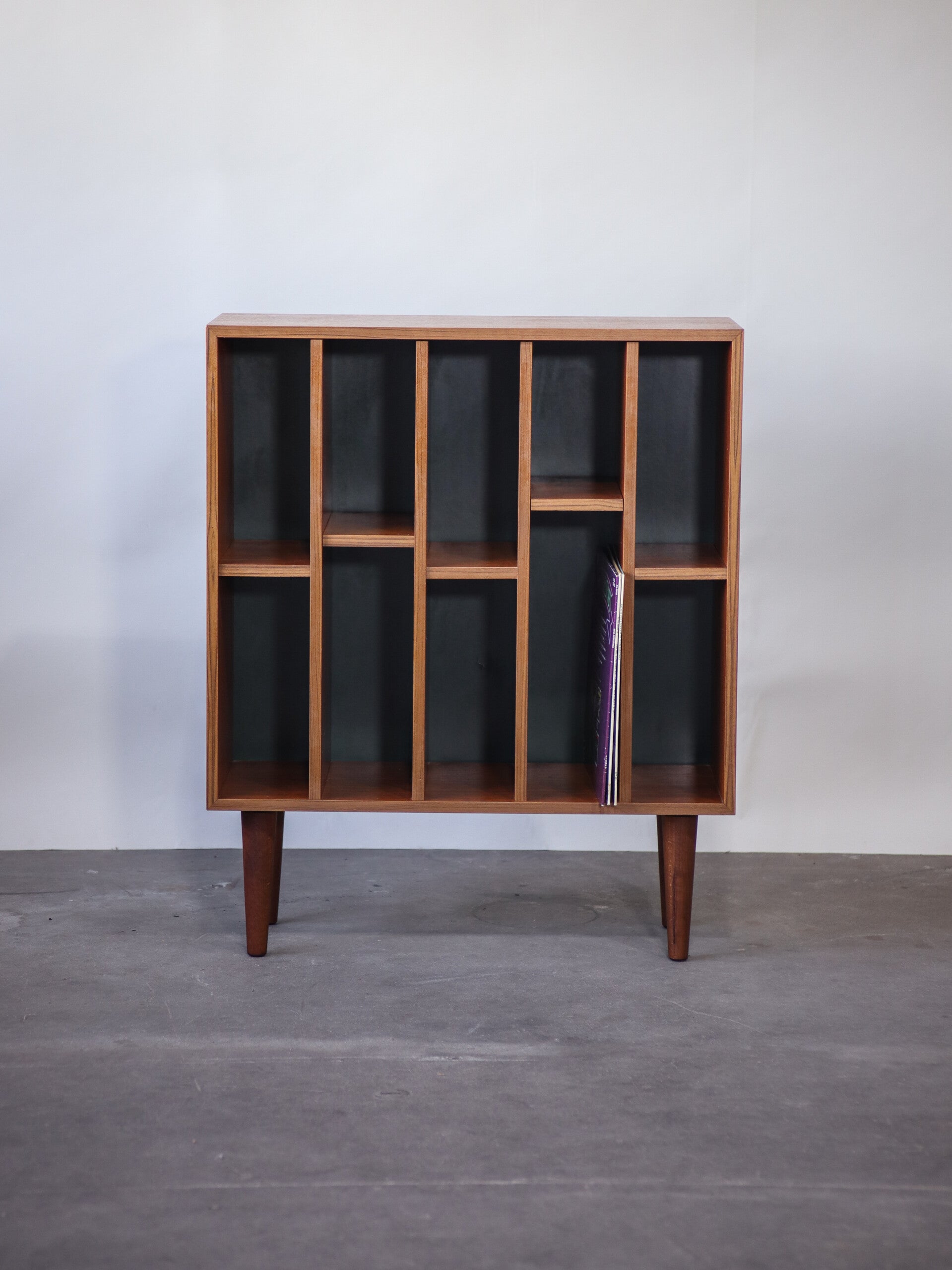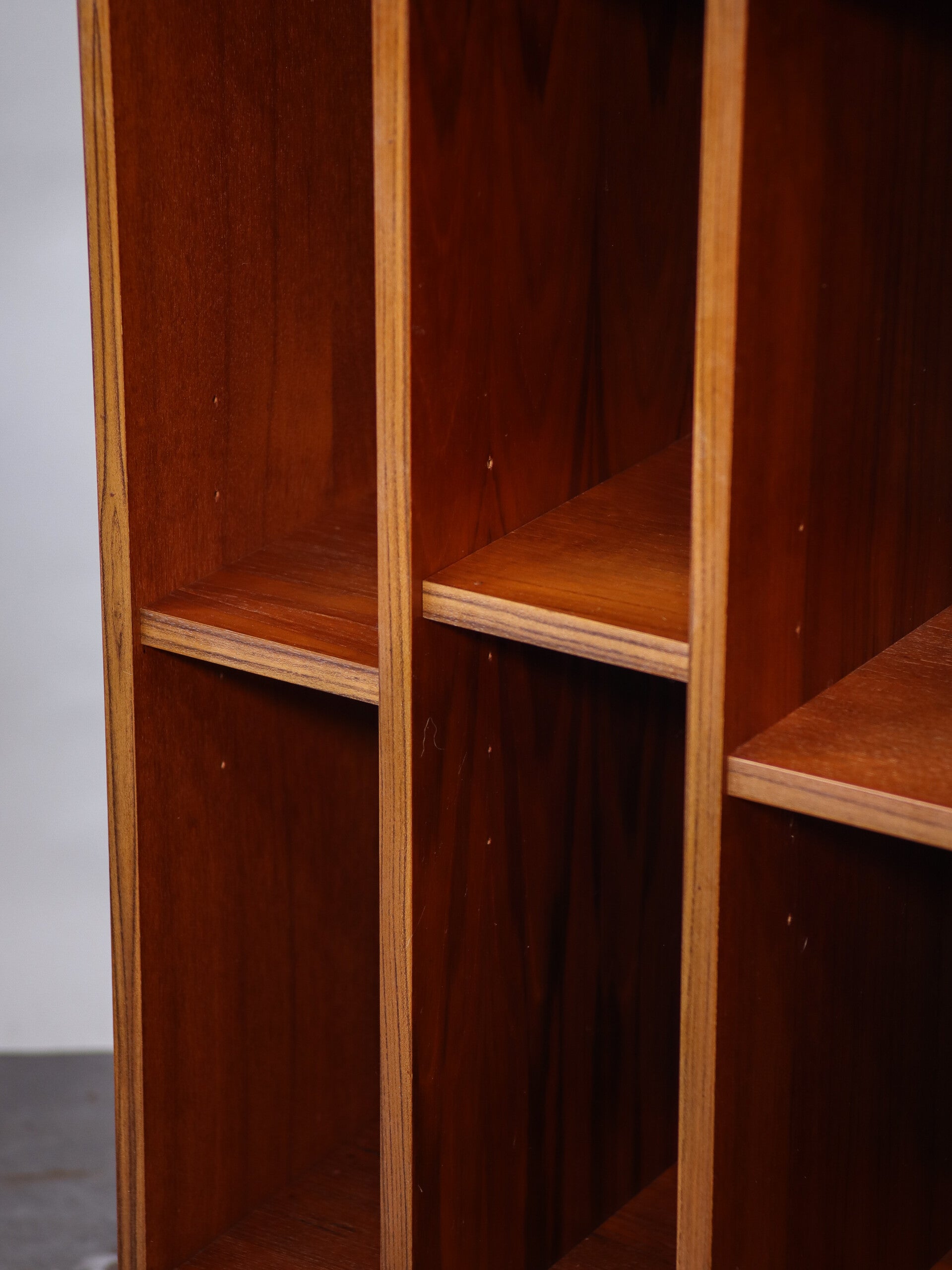 Unieke speelse vakkenkast met in hoogte verstelbare planken. Deze teakhouten kast is in de jaren '60 geproduceerd door Cardinal Møbler Horsens, Denemarken. De achterwand heeft aan de binnenkant een prachtige groene kleur.