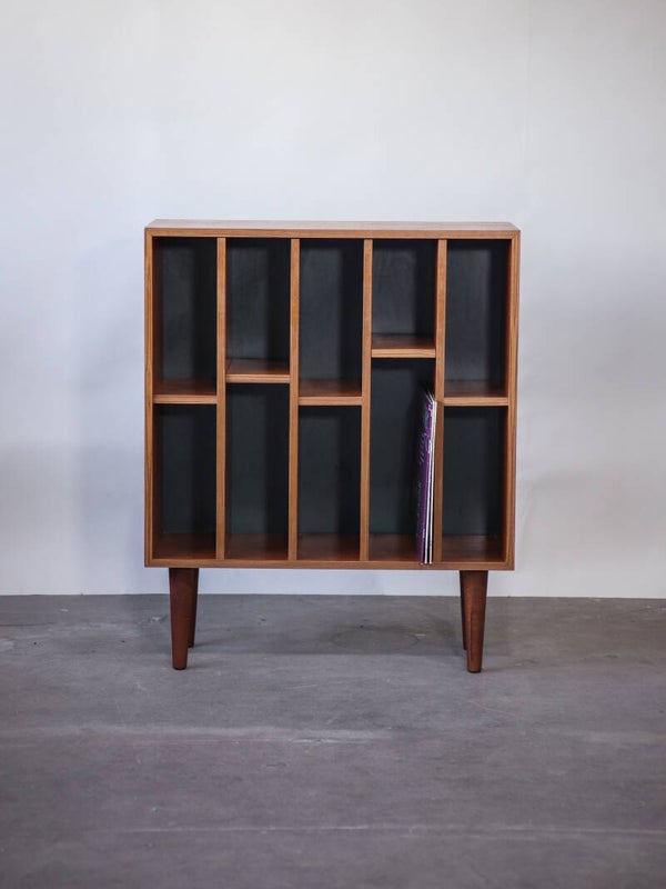 Deze kast is bijvoorbeeld te gebruiken als platenkast. De lp's steken dan wel een beetje uit en zijn niet boven elkaar te plaatsen (dus om en om boven en onder of alles op een rij). Zo kun je dus bijvoorbeeld boven een rij boeken doen en onder een rij platen.