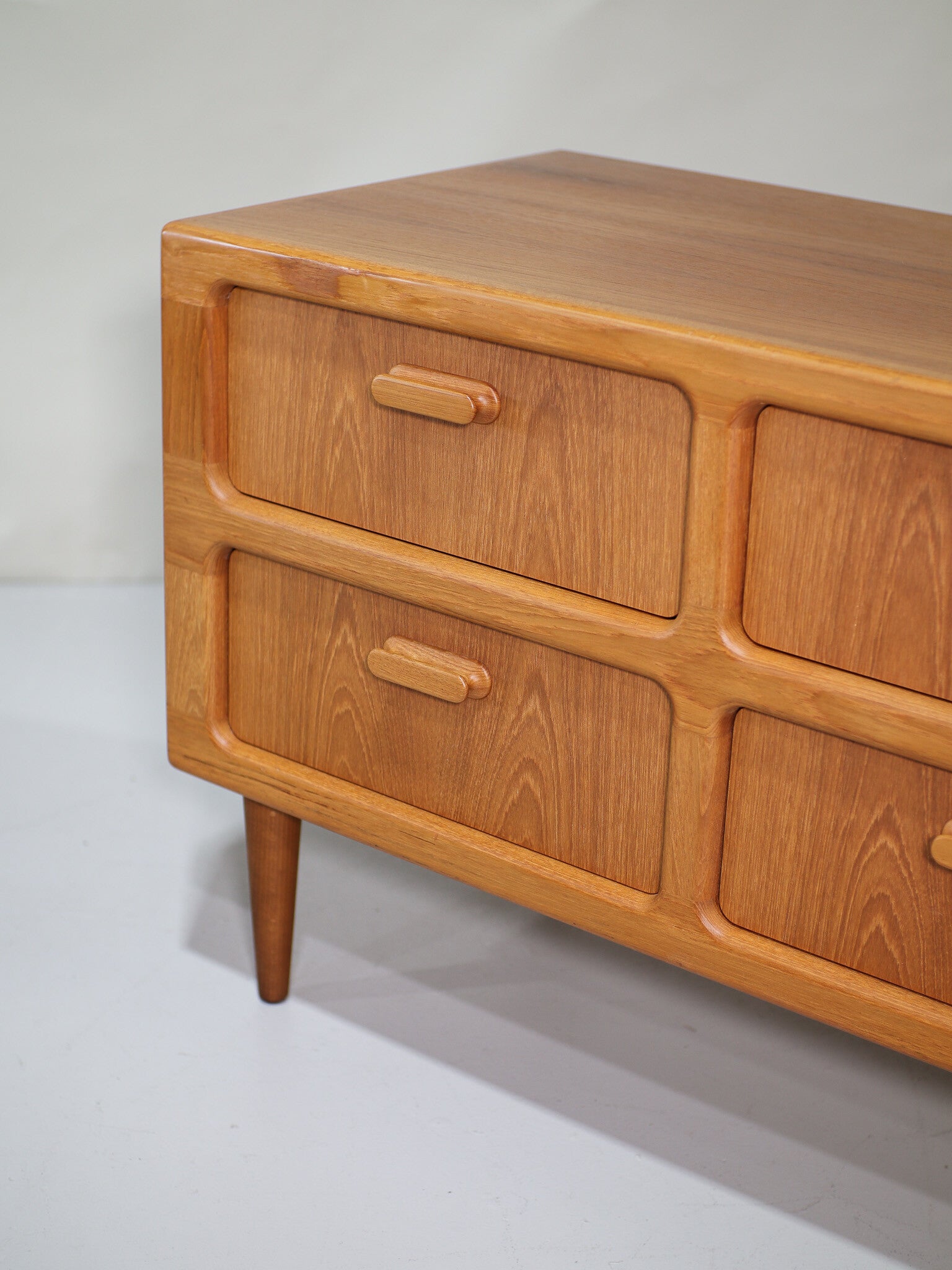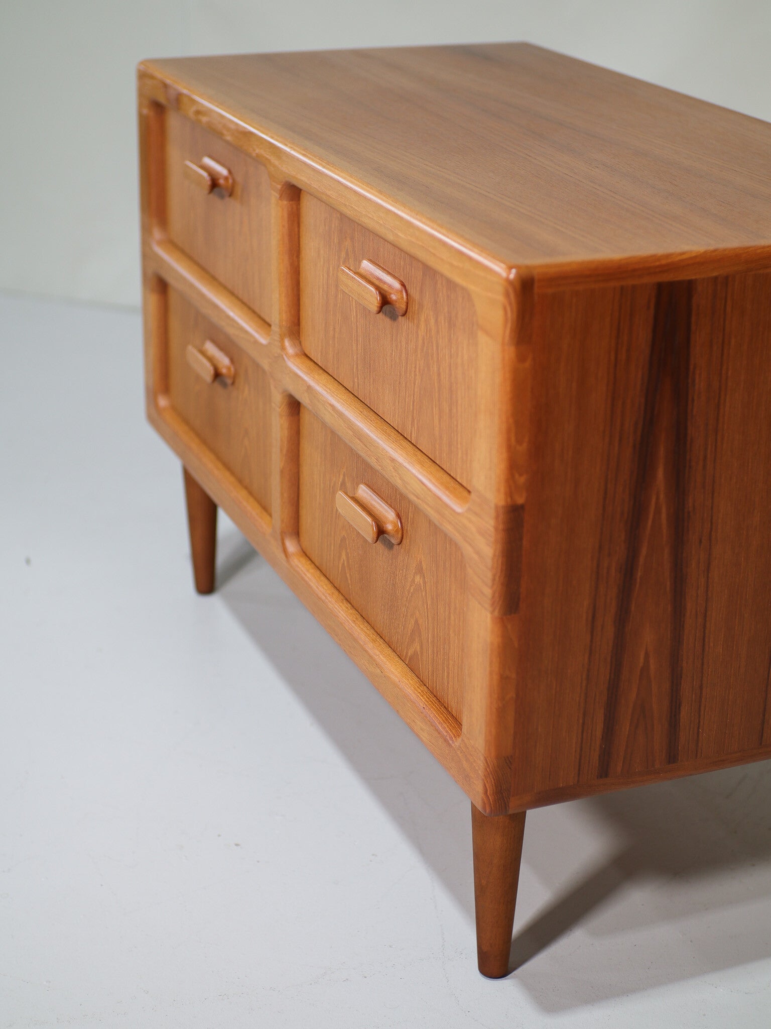 Prachtige ladekast geproduceerd door Silkeborg in Denemarken, 1960s. Deze kast is gemaakt van teakhout en heeft vier ruime lades met mooie houten grepen. Een stijlvol mid-century design met afgeronde vormen. Vergelijkbaar met de kasten van Dyrlund.