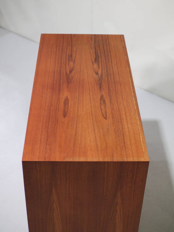 Prachtige ladekast geproduceerd door Hornslet Møbelfabrik in Denemarken, jaren '60. Deze kast is gemaakt van teakhout en heeft twee rijen lades met in totaal maar liefst 8 lades. De lades hebben zeer stijlvolle houten grepen.
