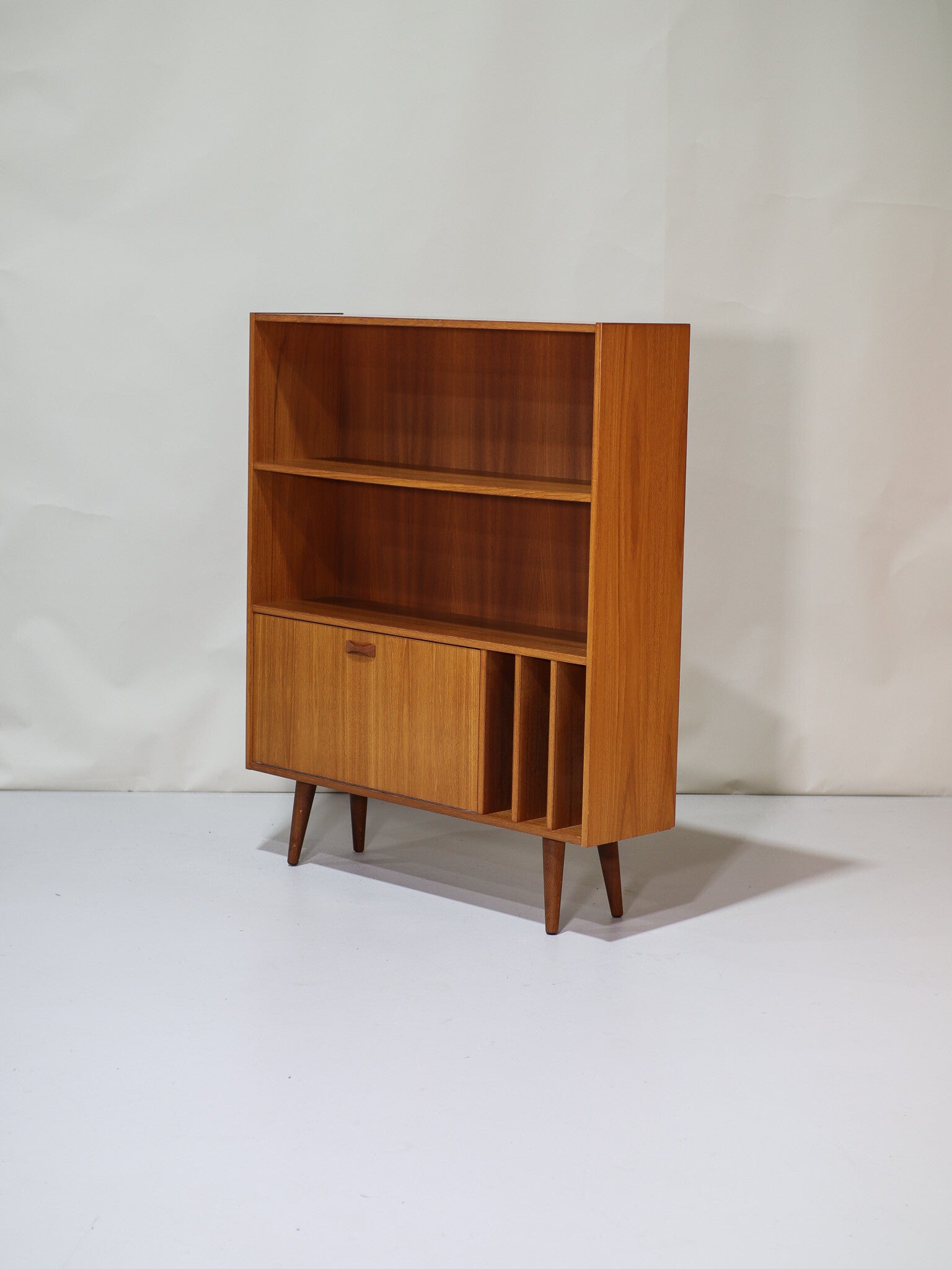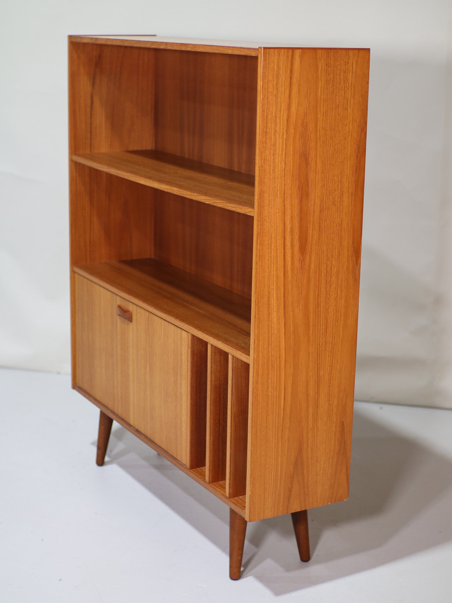 Boekenkast met klep en LP vakken Clausen & Søn Deens vintage teak