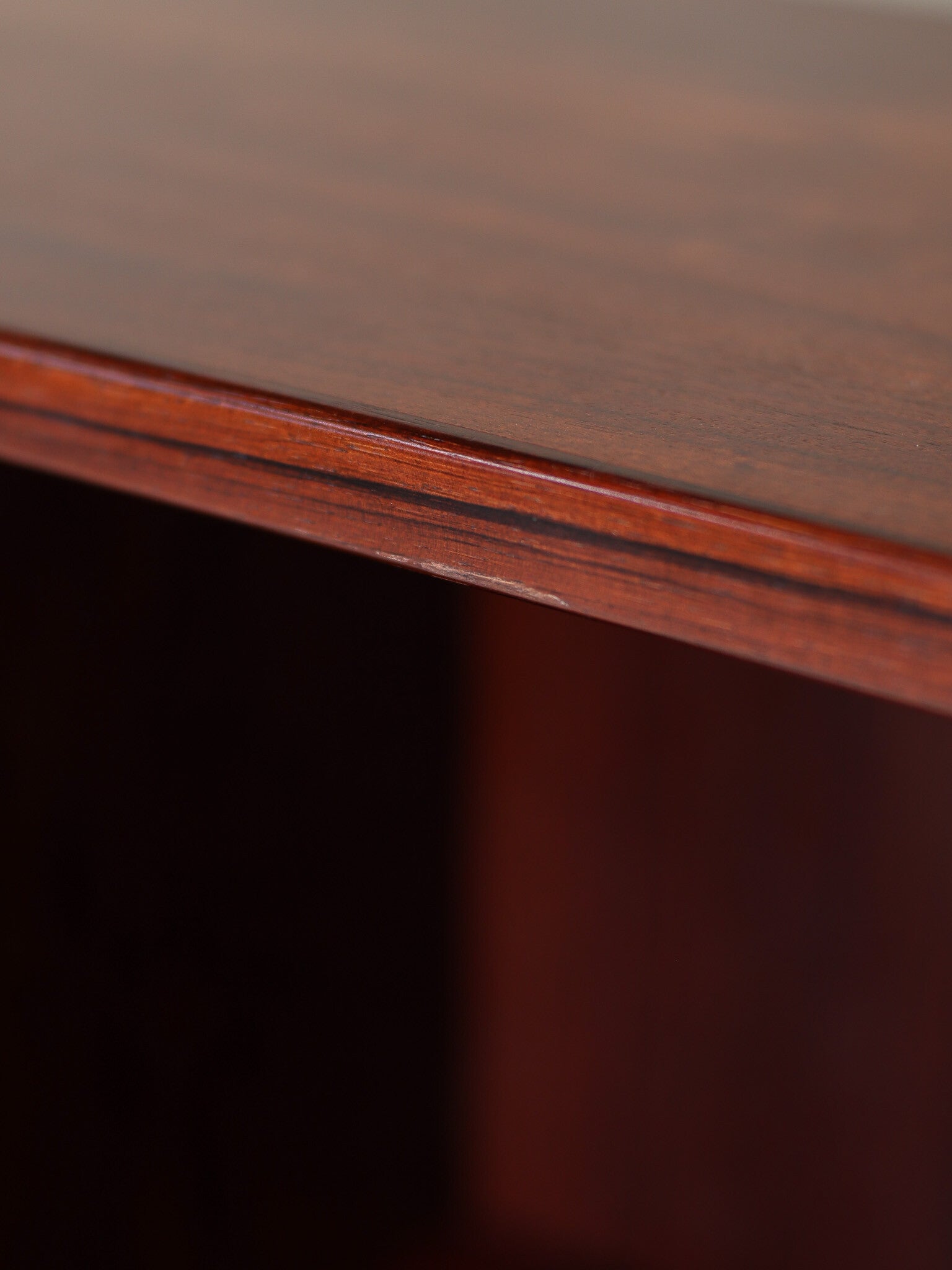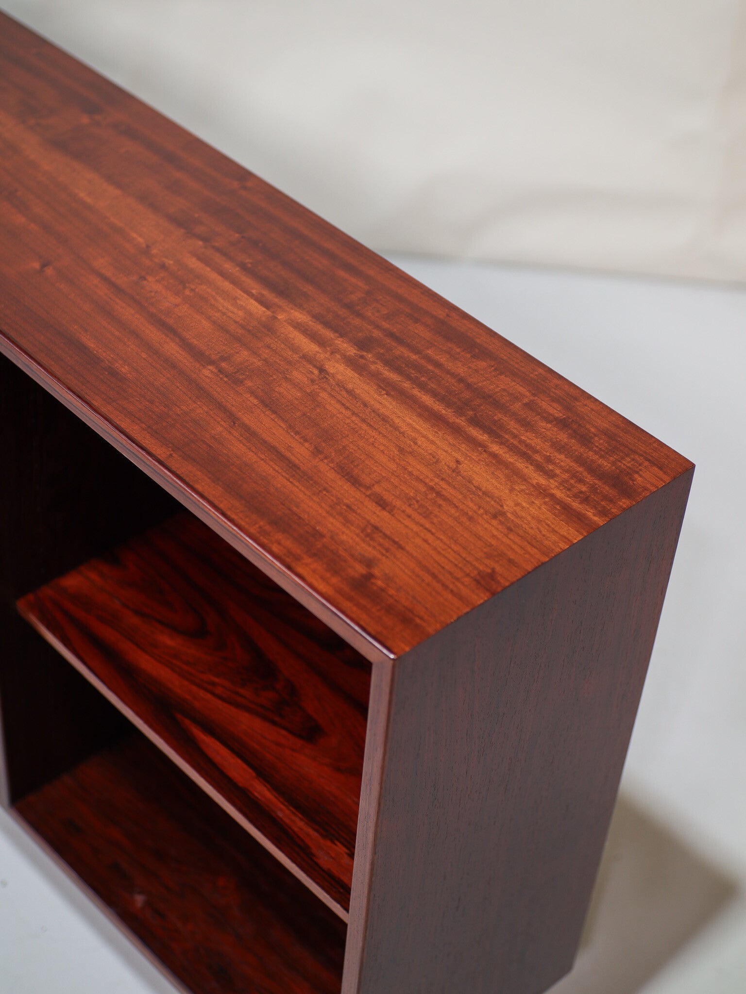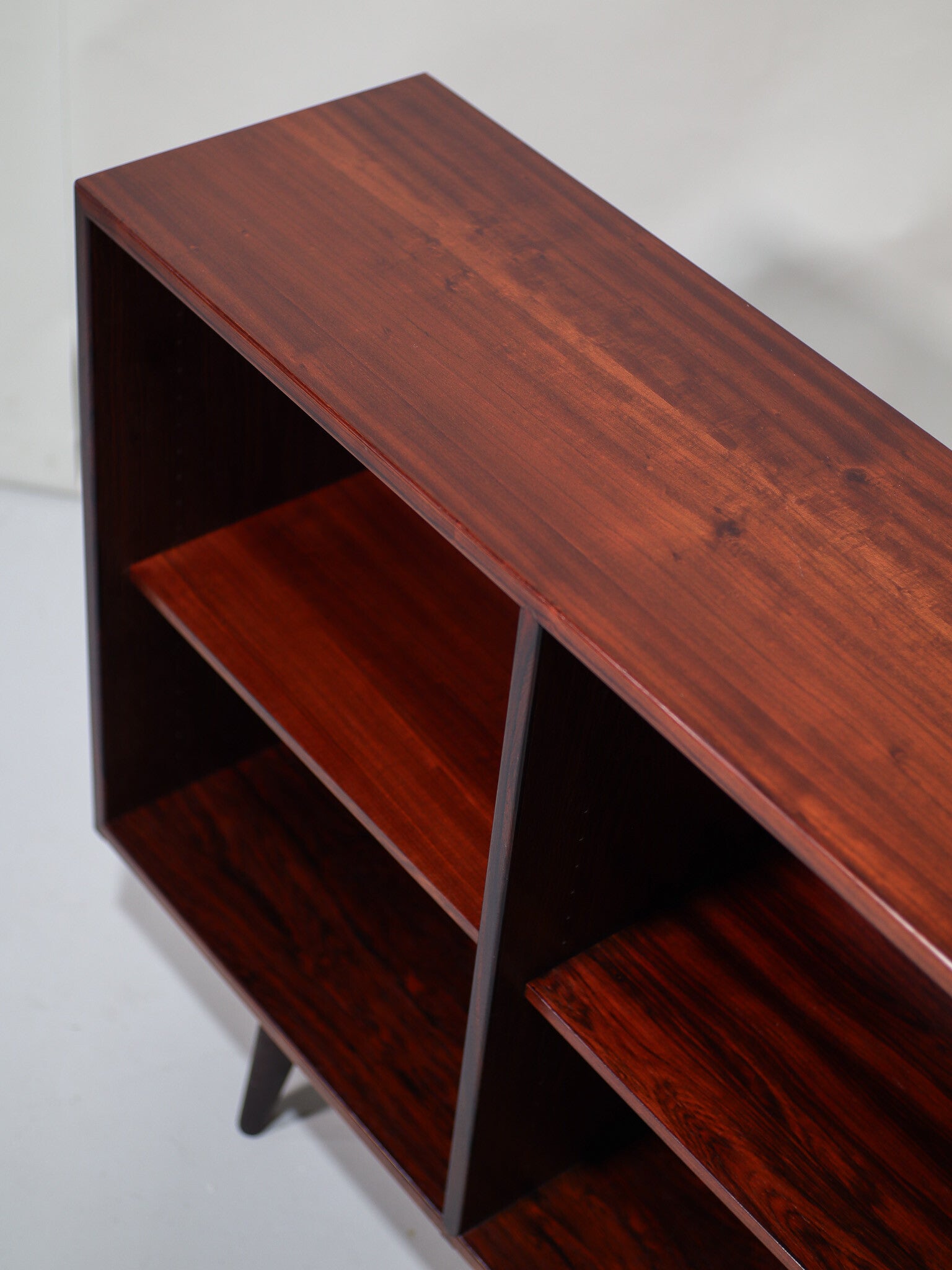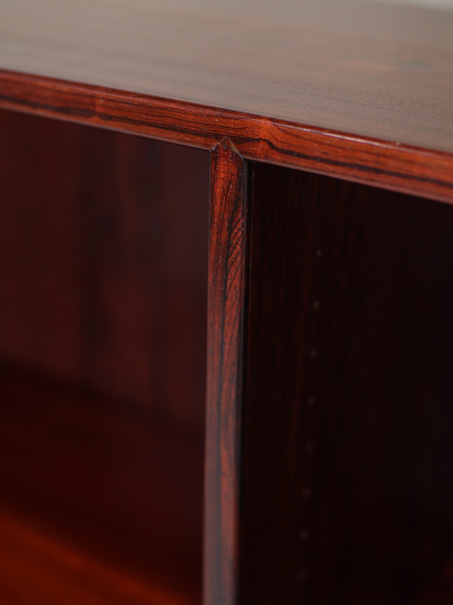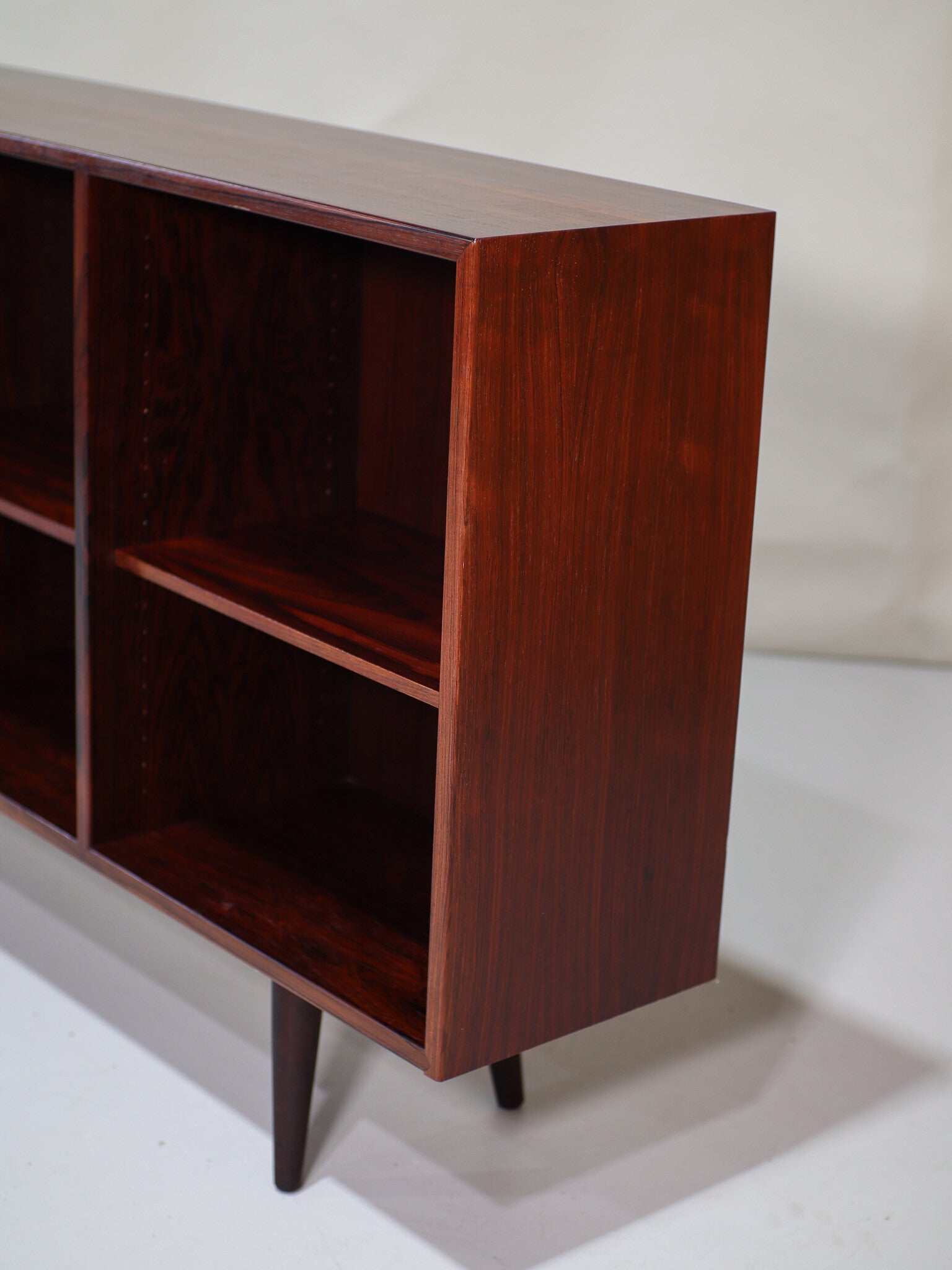 Prachtige lage boekenkast ontworpen door Sven Ellekaer in Denemarken, jaren '60. Deze vakkenkast is gemaakt van palissanderhout met een mooie houttekening. De planken zijn in hoogte verstelbaar, zo is de kast eenvoudig naar wens in te delen.