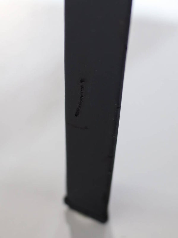 Een set van vier eetkamerstoelen ontworpen door Pierluigi Cerri voor Poltrona Frau, Italië. Vervaardigd in de jaren '90. Deze 'Lola' stoel met armleuningen heeft een structuur van polyurethaan met metalen inzetstukken en is volledig bekleed met zwart leer. De stoel staat bekend om zijn minimalistische design en verfijnde afwerking.