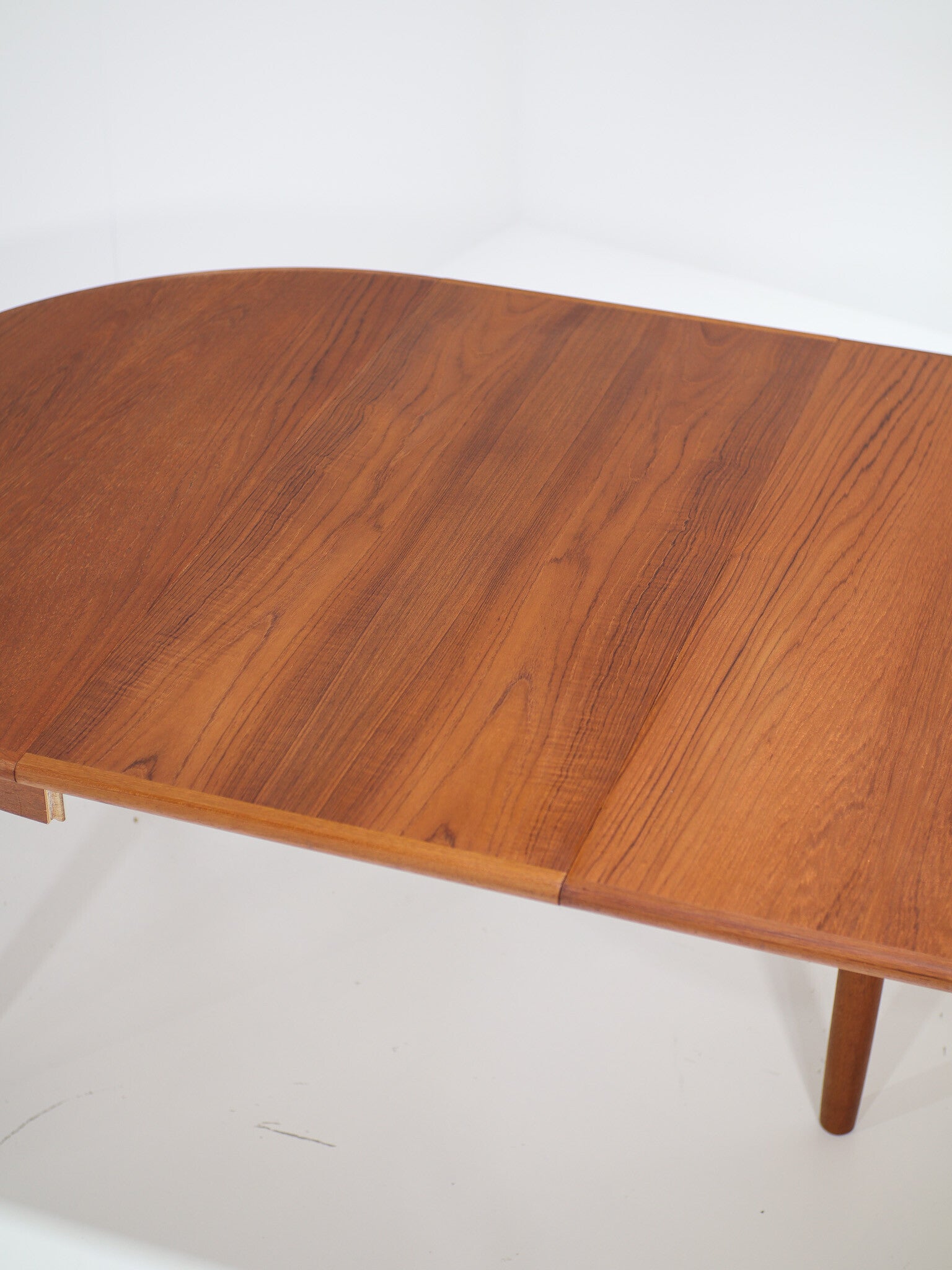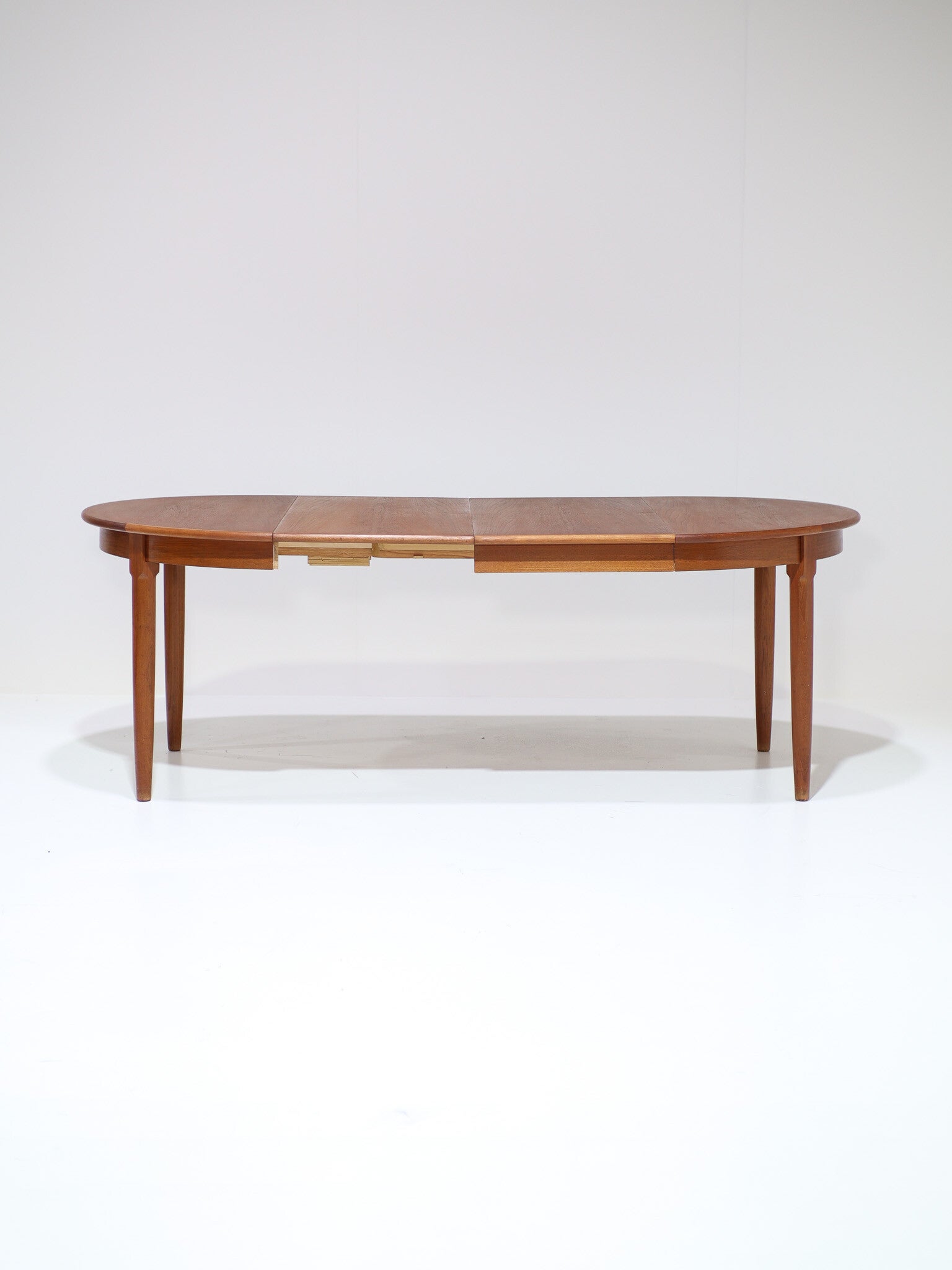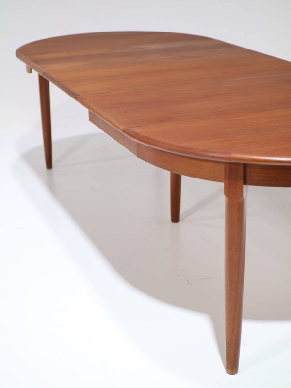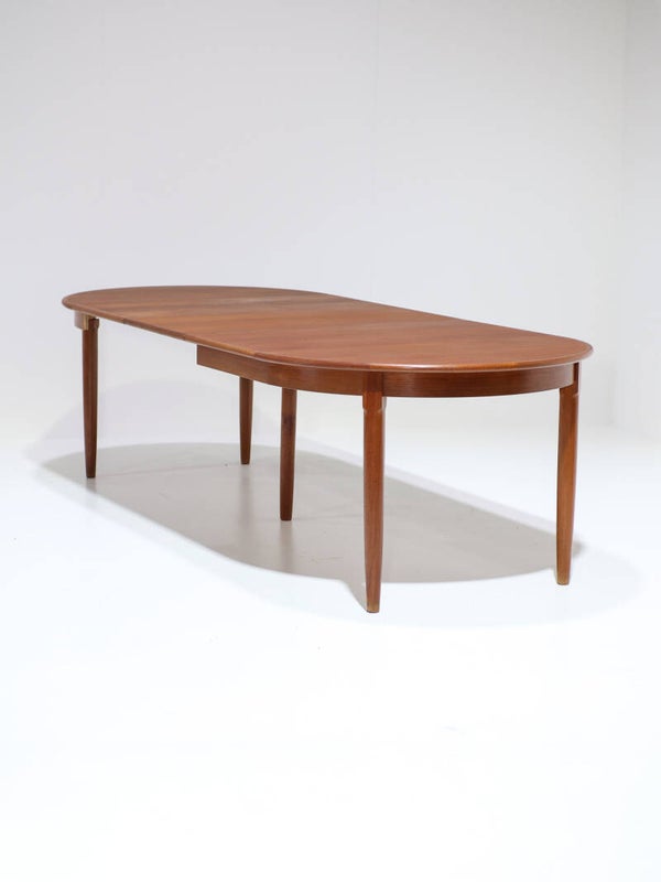 Uitschuifbare eettafel Deens vintage teak rond ovaal