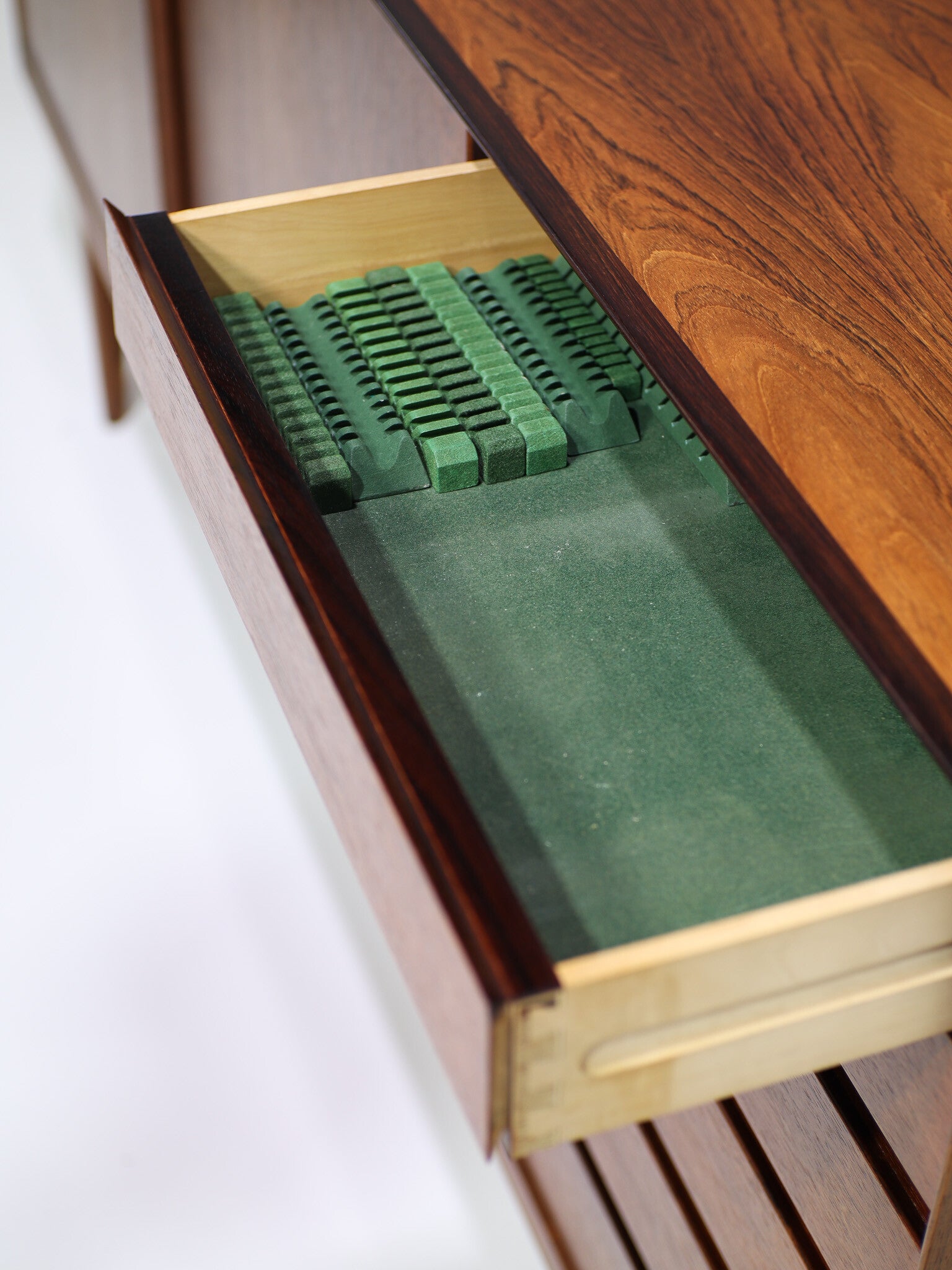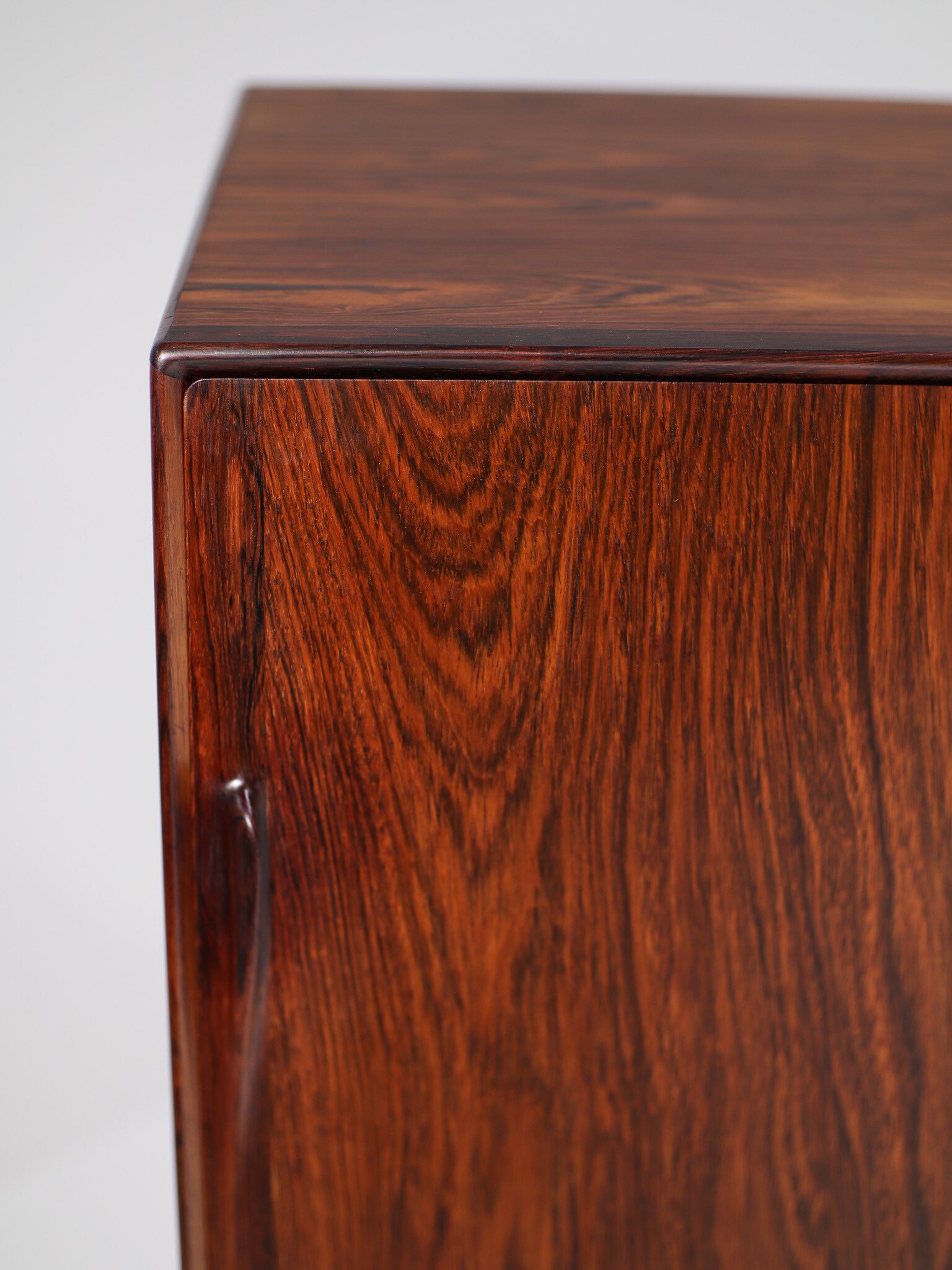 Het design is minimalistisch en uiterst stijlvol met organisch gevormde en verfijnde details in de grepen, poten en randen. De randen, lades en deuren zijn schuin afgewerkt en hebben afgeronde hoeken, waardoor het prachtig aansluit. Een tijdloos design dat zeer hoge kwaliteit en Deense vakmanschap uitstraalt!